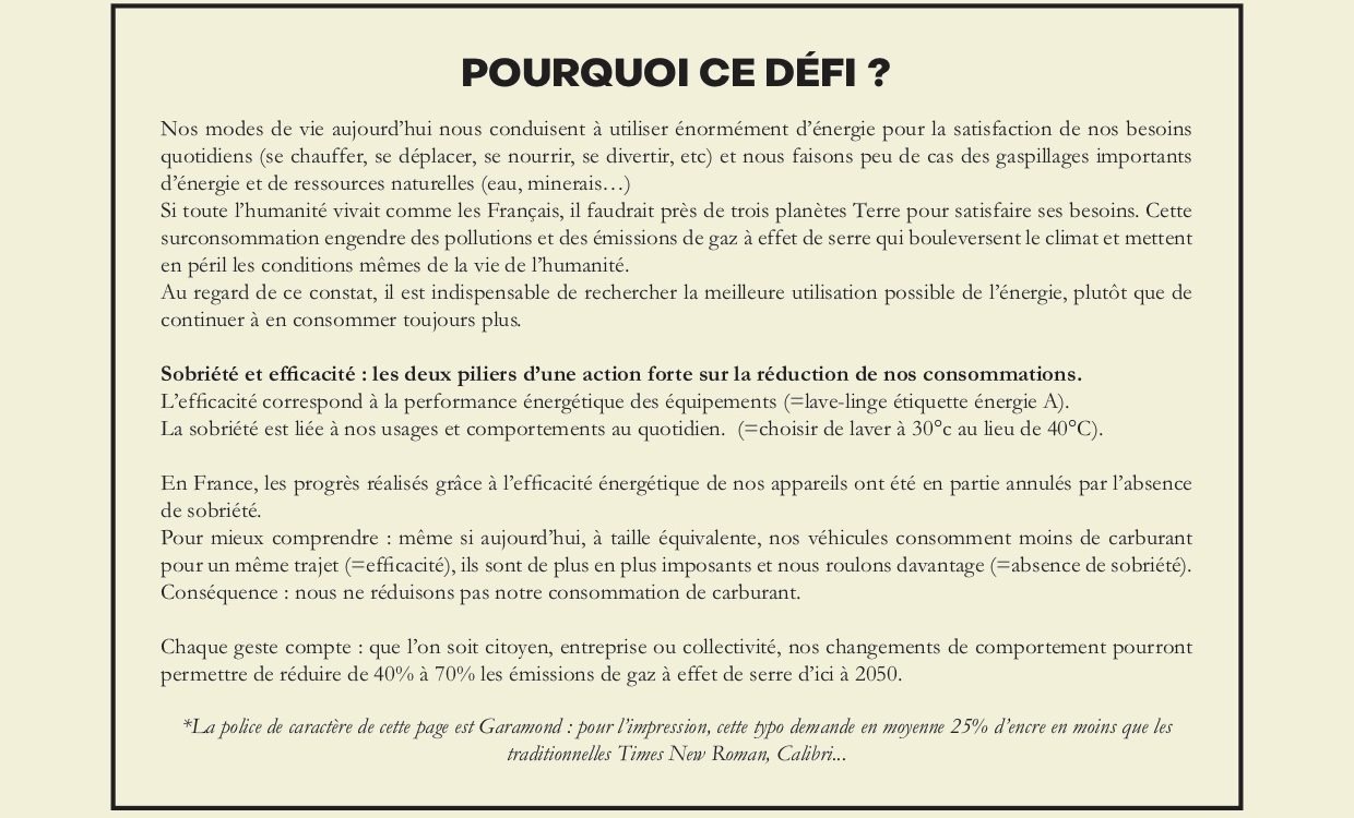 Chaque défi est présenté sous forme de fiches détaillées, expliquant l'enjeu du mois ainsi que les challenges qui en découlent. L'objectif est de susciter un engagement concret autour de pratiques durables au quotidien.