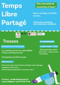 En 2018, la Communauté de Communes et l'UFCV ont créé un dispositif visant à favoriser les rencontres et la détente pour les séniors : le Temps Libre Partagé.